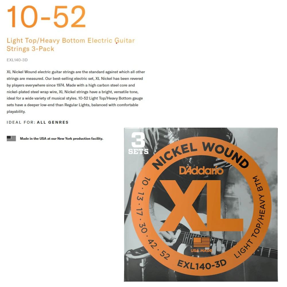 3 Sets EXL140 D’Addario EXL140-3D Nickel Wound 10-52 Guitar Strings